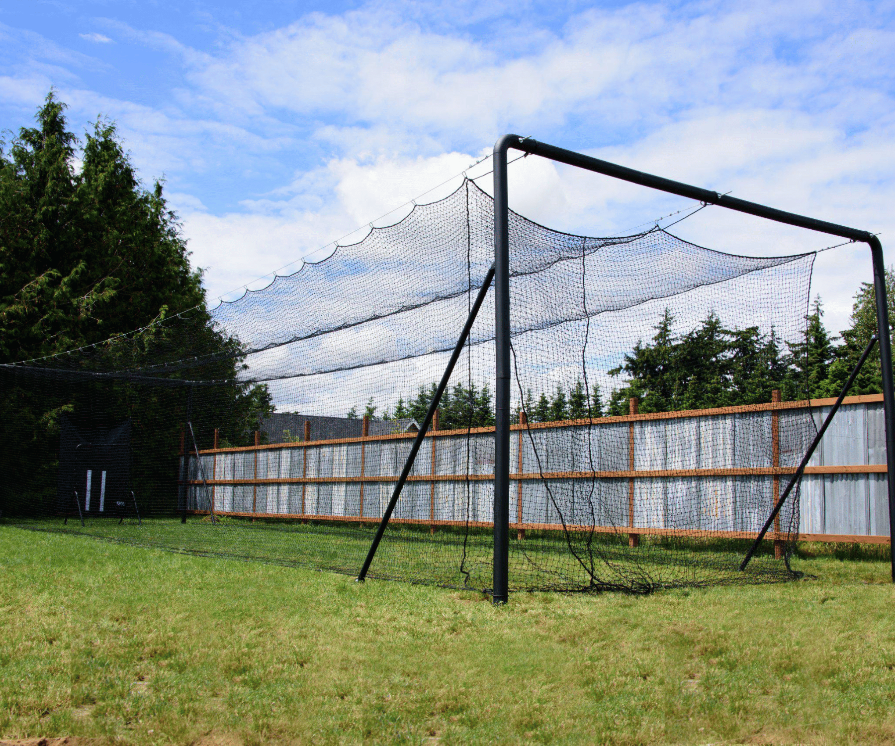 The Iron Horse Batting Cage is a durable and versatile option, featuring 4" powder-coated steel poles and #42 KVX200 netting. Its shoe-box shape makes it ideal for backyards, parks, schools, sport complexes, and facilities, providing a reliable setup for serious training and practice.