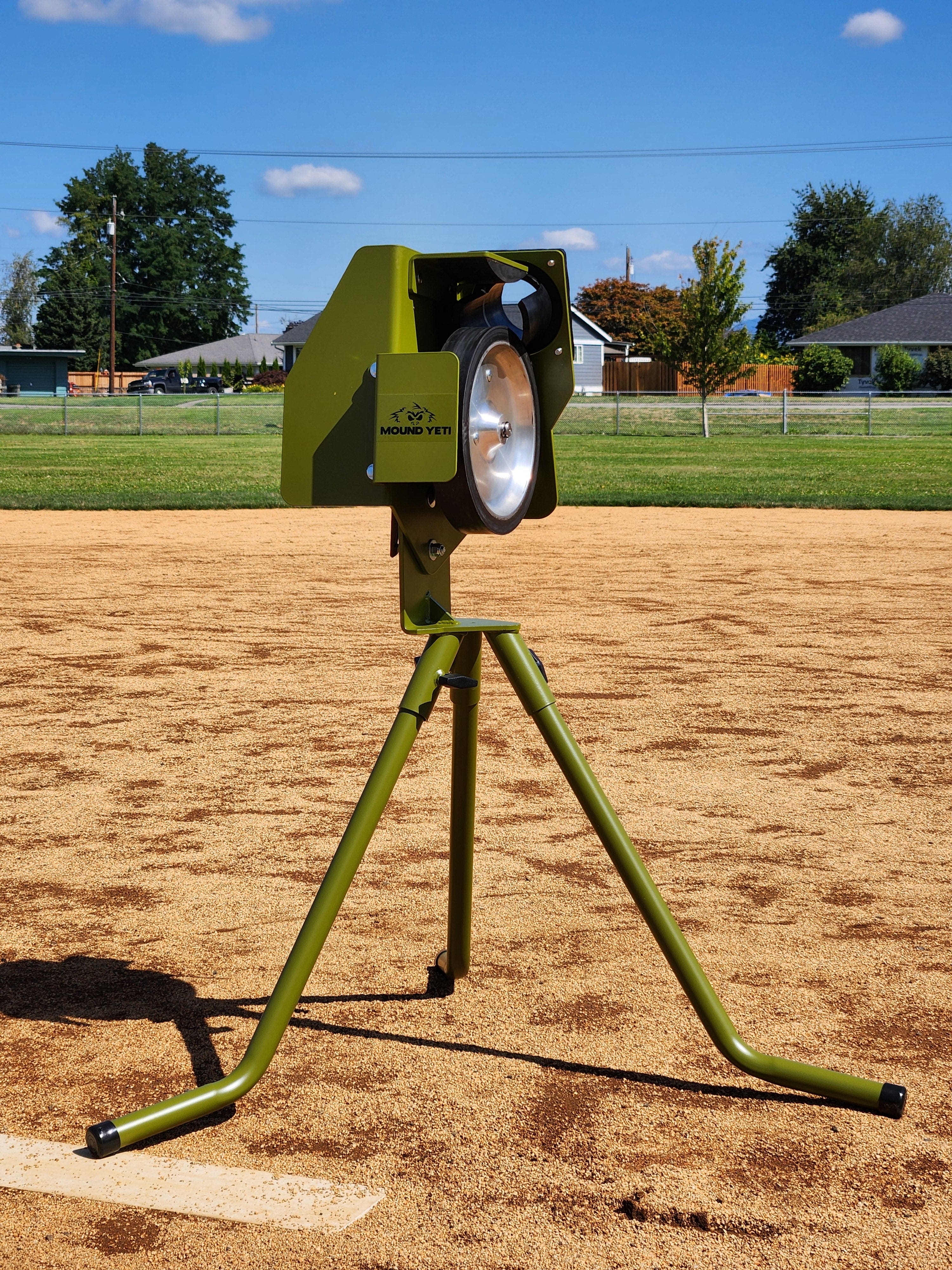 The Mound Yeti™ 1 is a fastball only version pitching machine built for those soon to be “Big Leaguers” just starting out and for those in machine pitching leagues. This machine is an entry level, lightweight (50 lb), portable solution making it an ideal choice for younger players. This model has variable speed adjustments from 30-60 MPH, with a heavy-duty solid wheel, air pressure problems are eliminated creating more consistent pitches to help these young hitters. The Mound Yeti 1 comes with 2 ball chutes to switch between baseball and softball. The machine also comes with heavy-duty steel legs that are reversible to vary pitch height and a 2 year limited warranty.